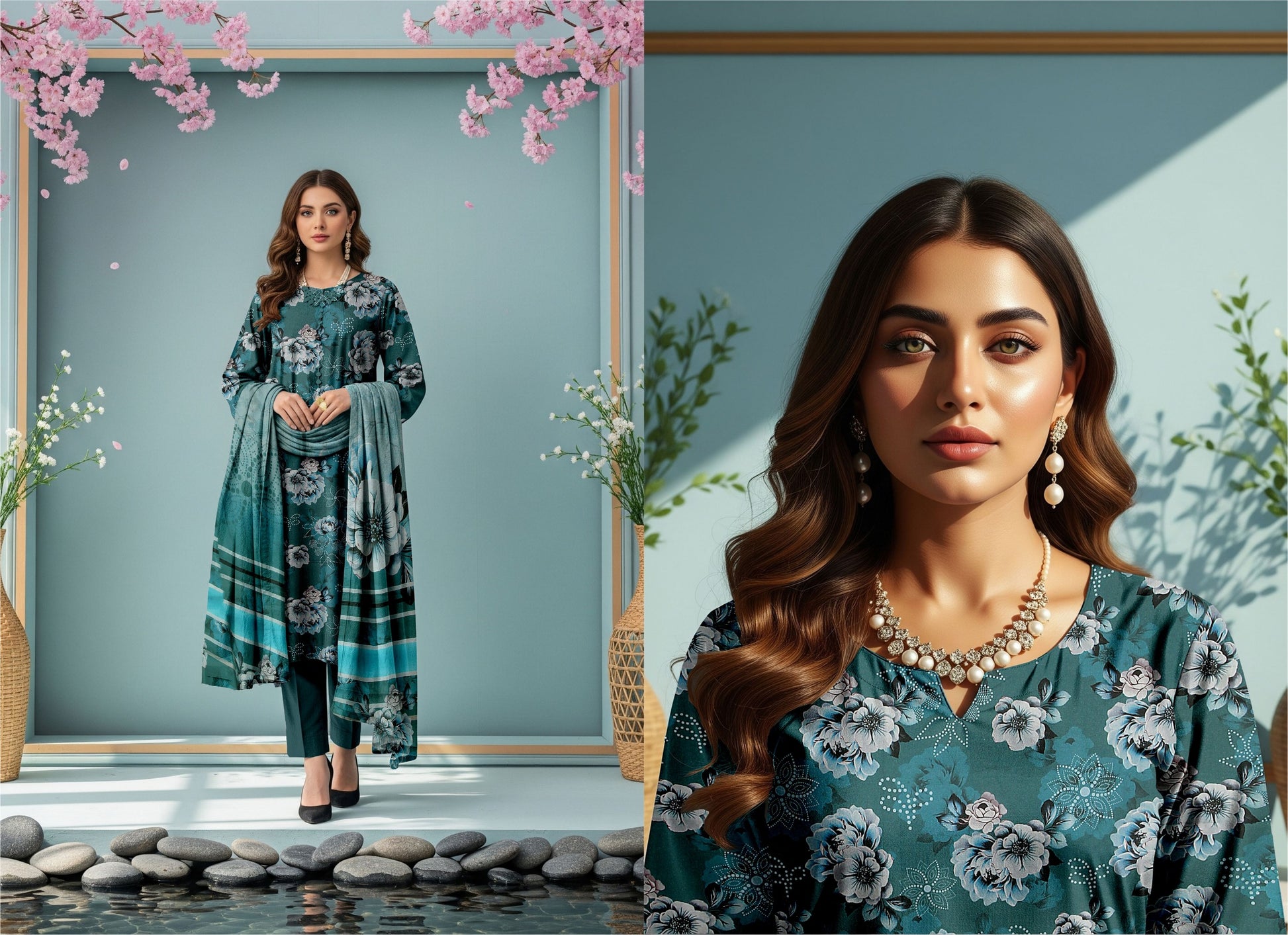 Paired with a Digital Print Silk Voil Dupatta, adding texture, elegance, and a graceful finish to the ensemble.