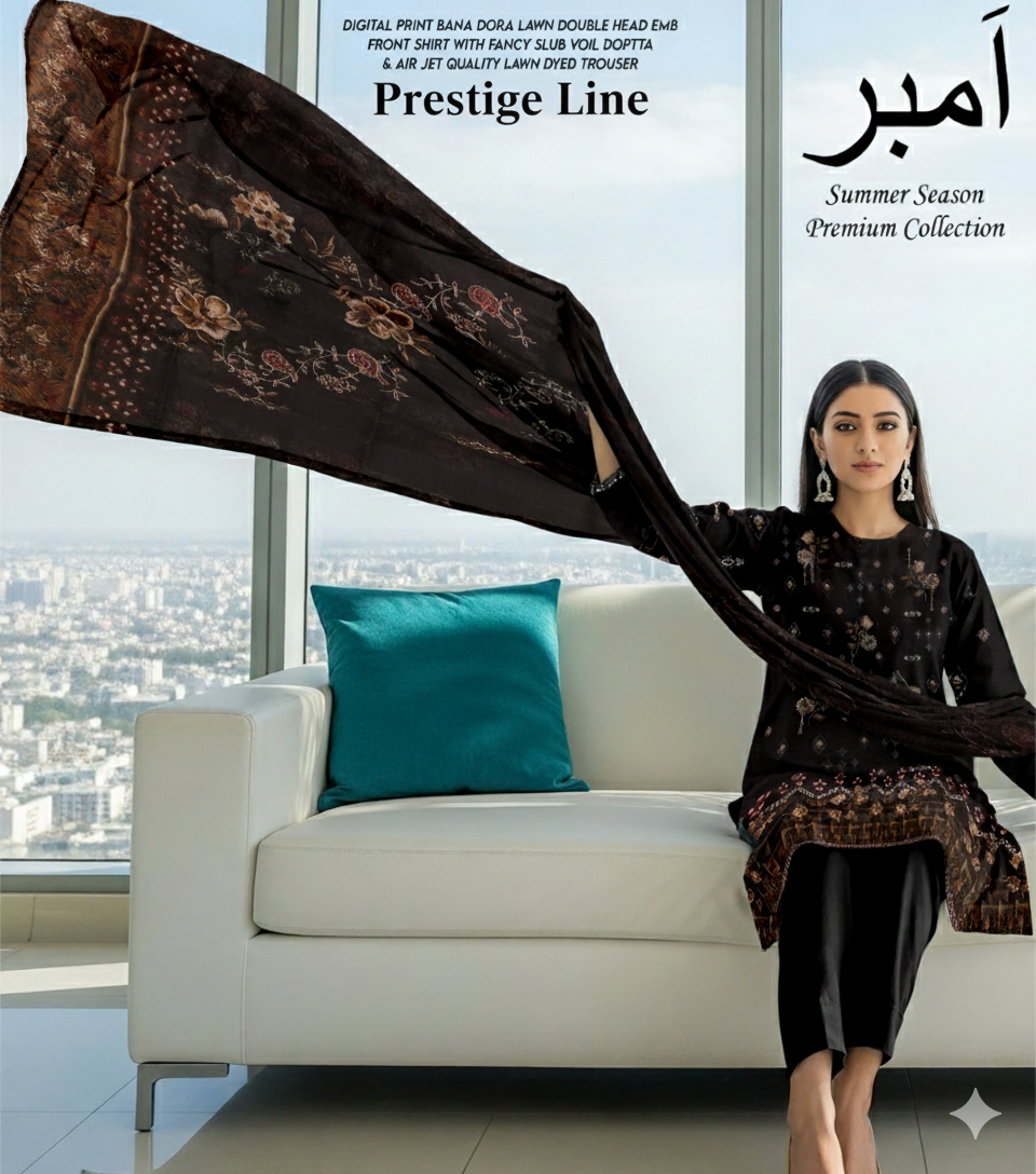 Crafted from Bana Dora Lawn, soft, breathable, and lightweight, offering lasting comfort with a premium summer feel.