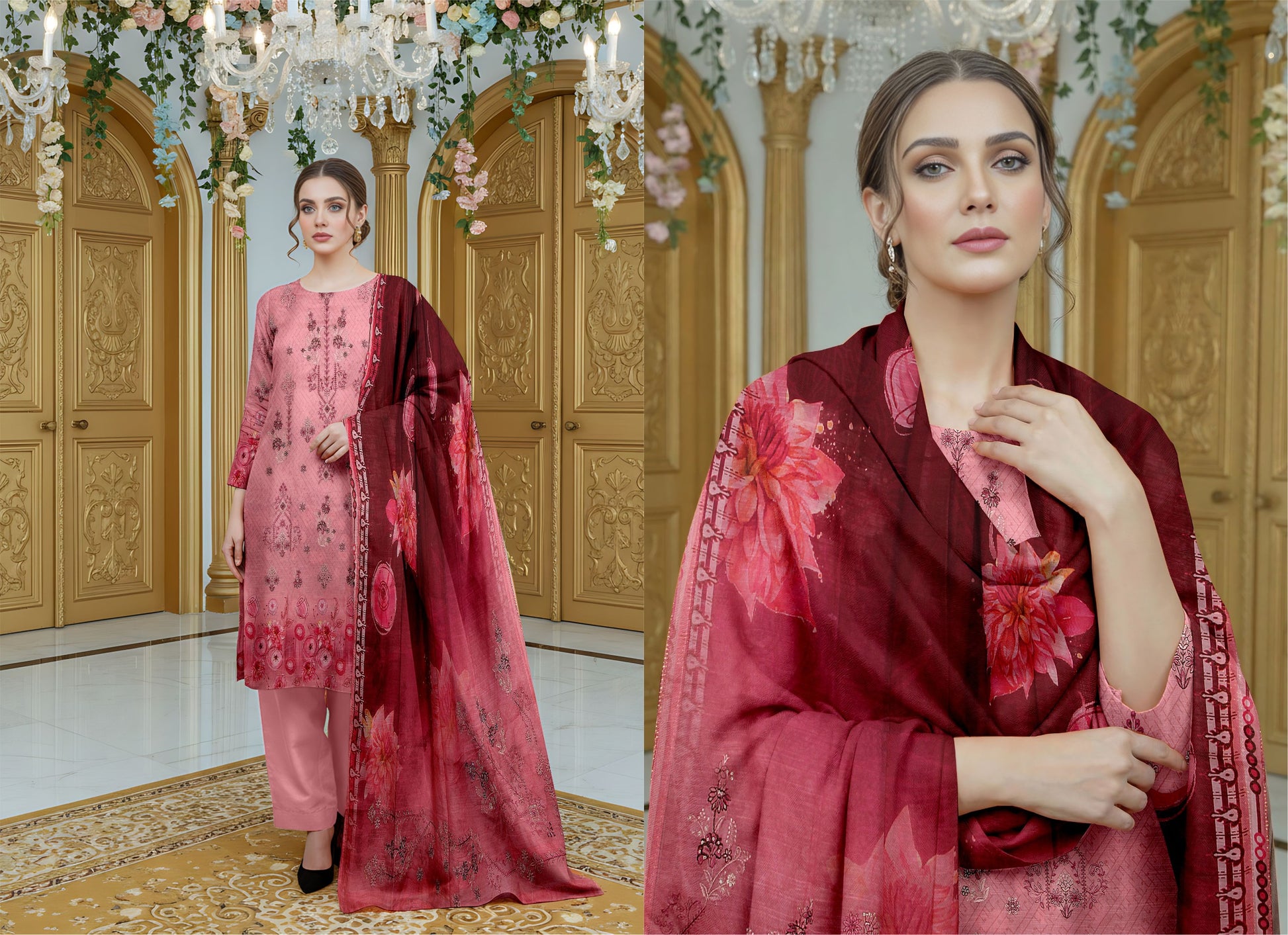 Featuring a Double Head Embroidered Front Shirt, enhanced with Exclusive Style Pallu Embroidery on Slub Voil Dupatta, creating a harmonious blend of tradition and contemporary design.