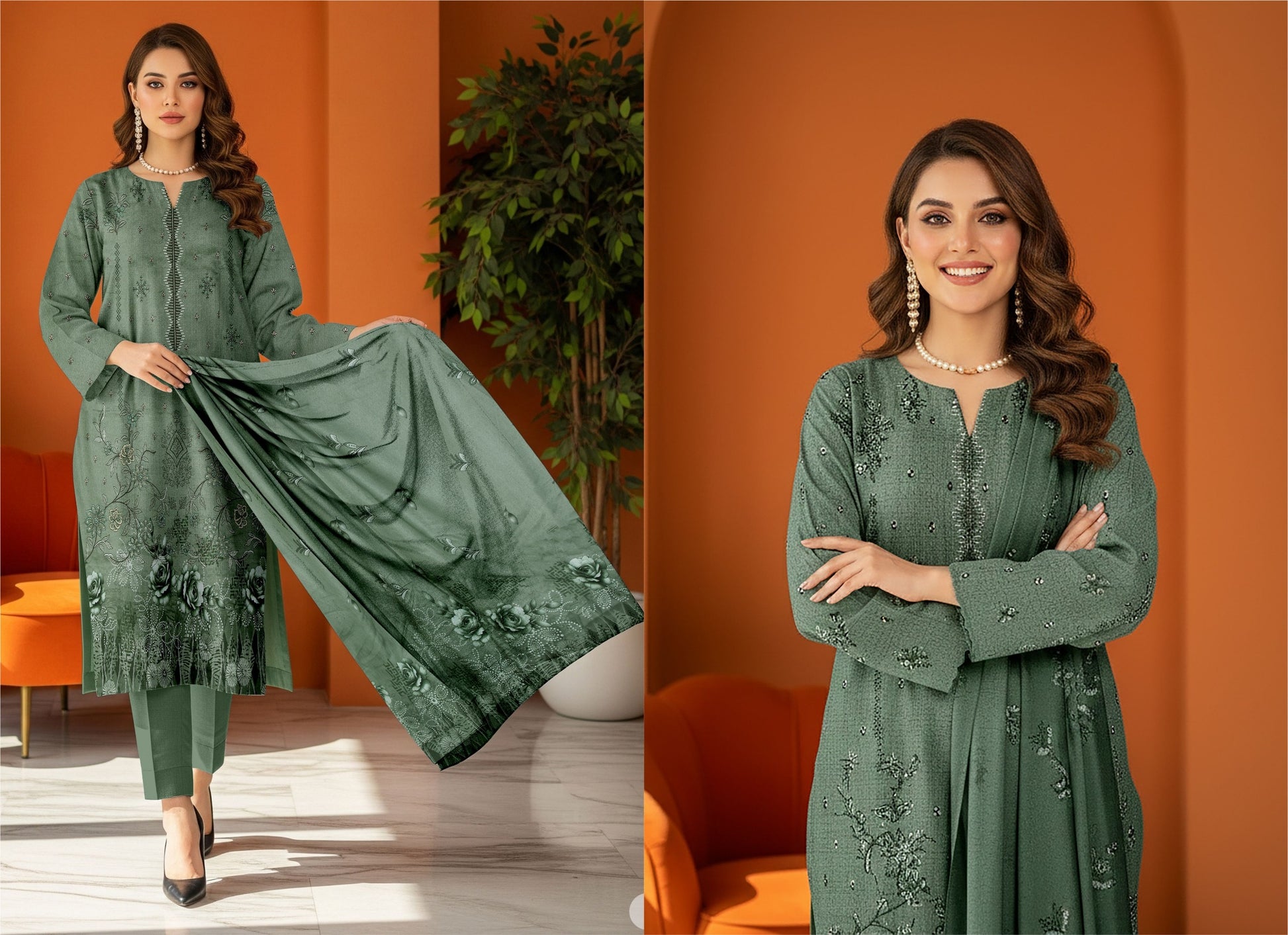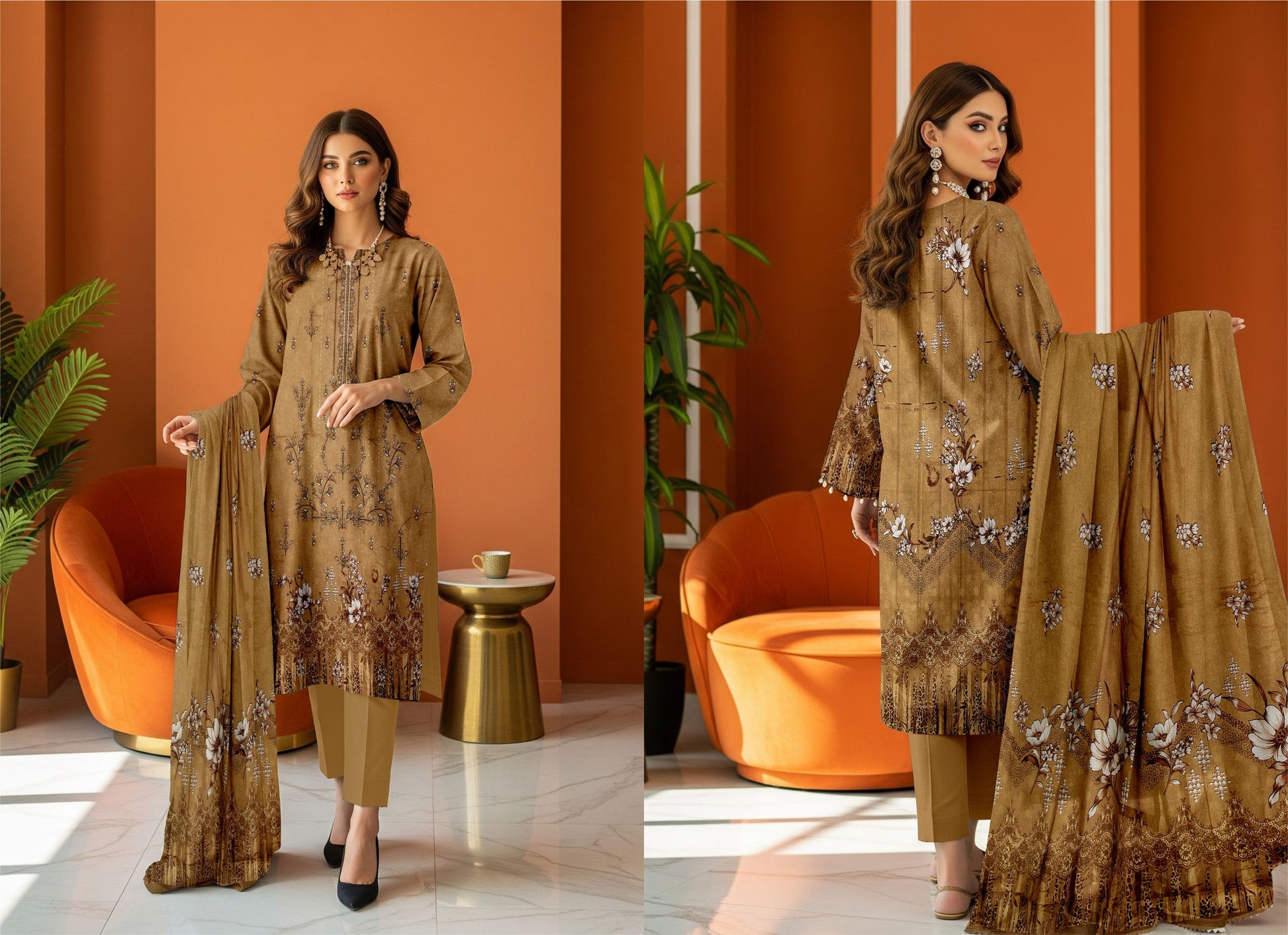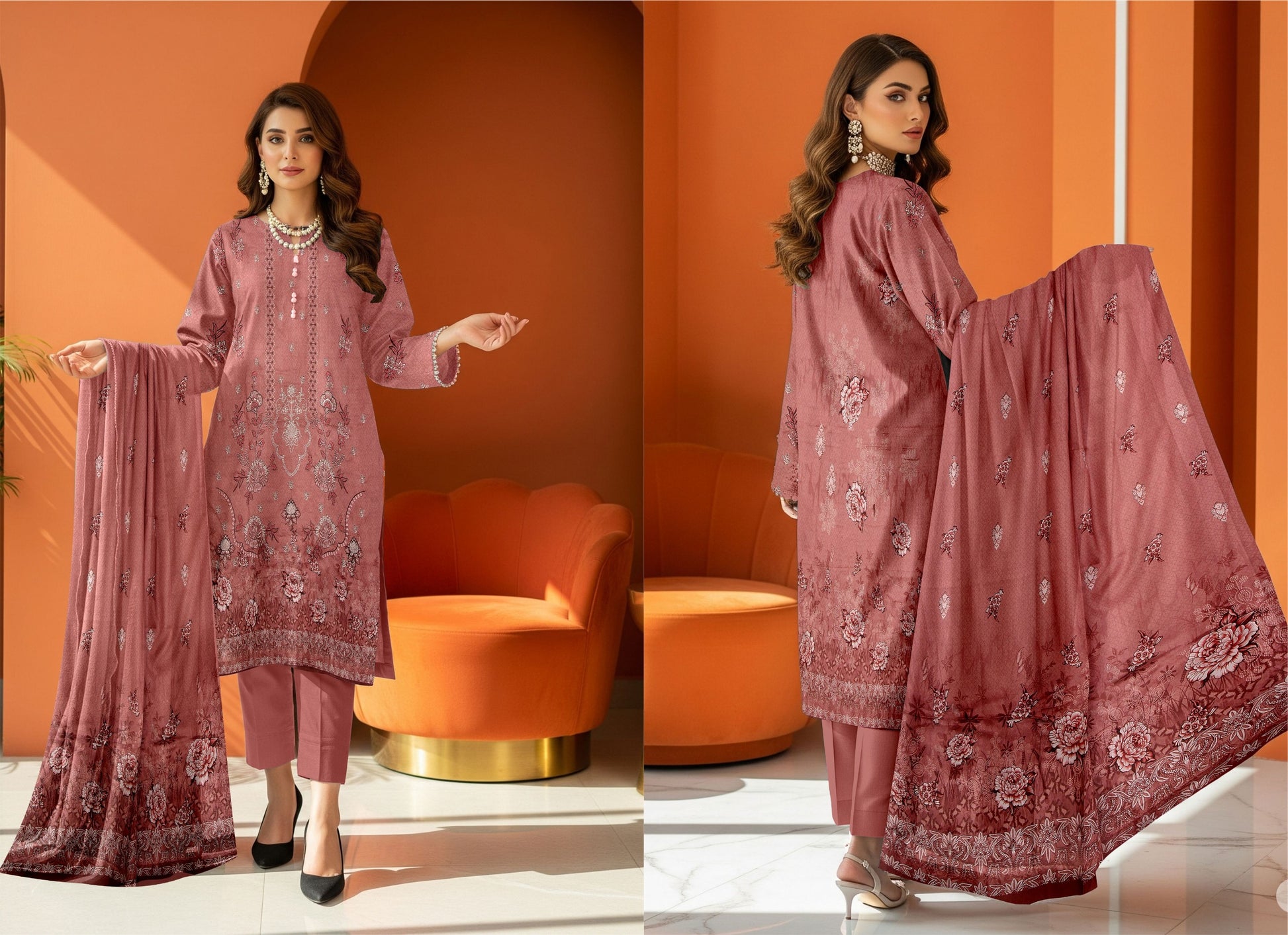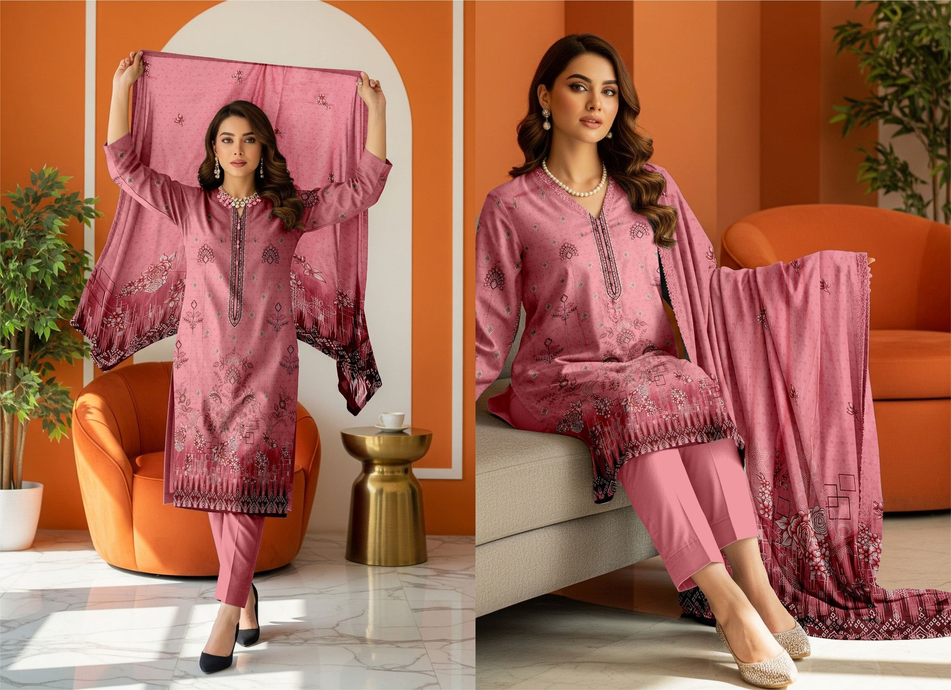 Paired with a Luxury Voil Lawn Dupatta, providing smooth flow, vibrant texture, and a premium finish for the complete outfit.